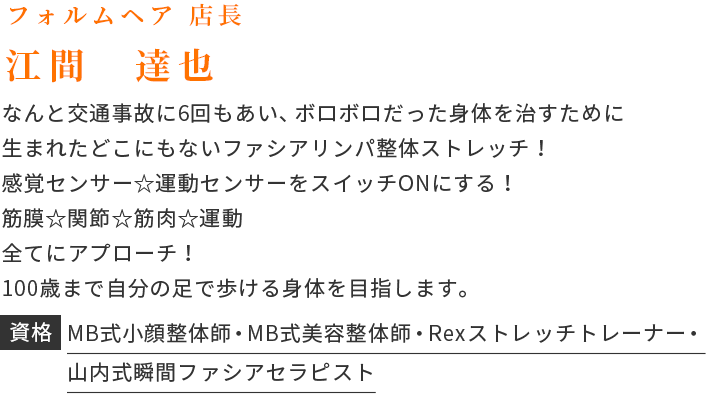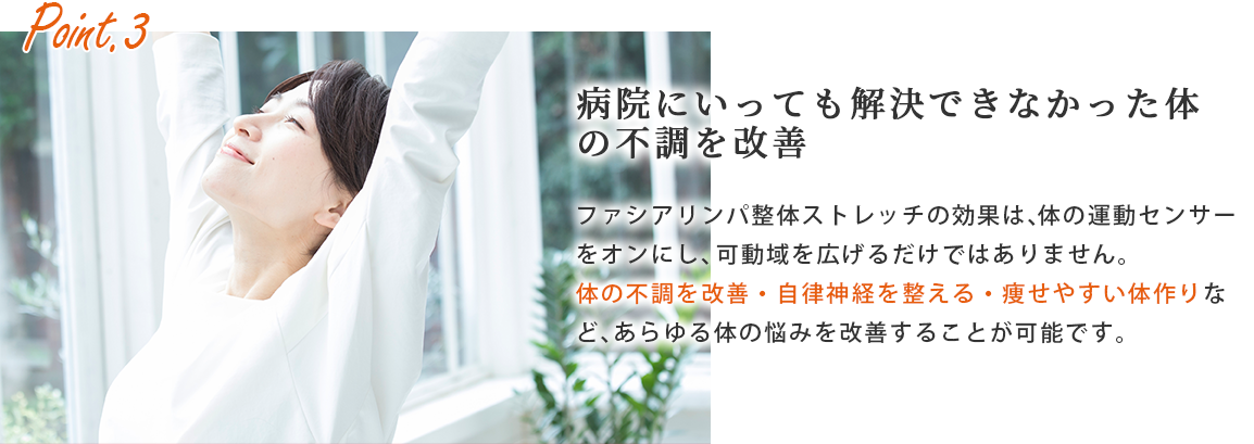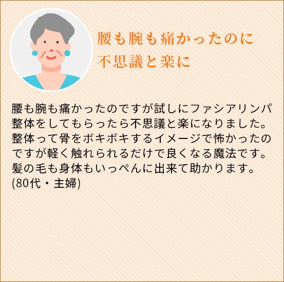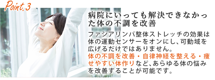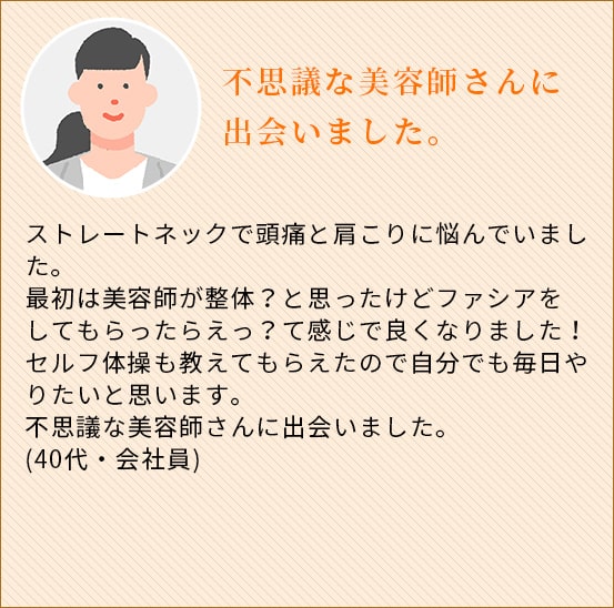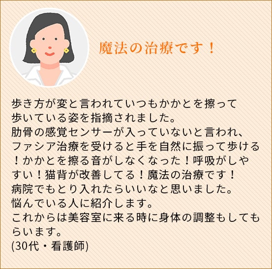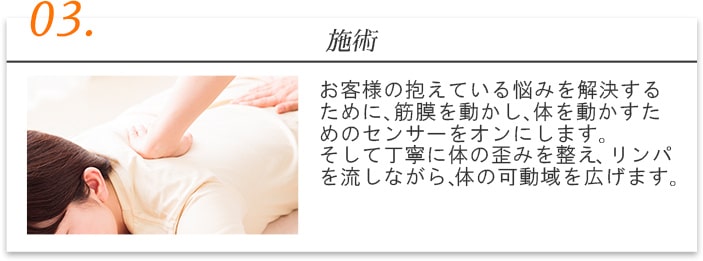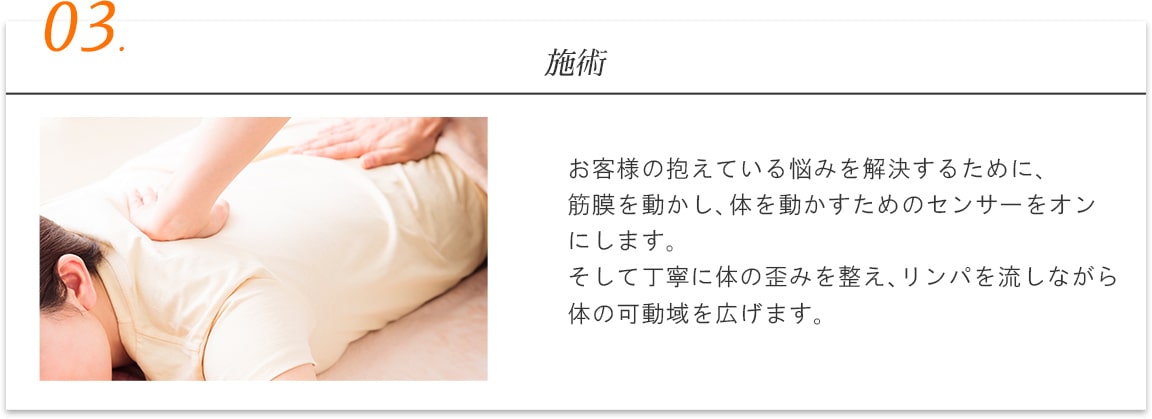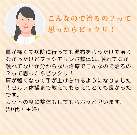 しかし、ファシリアリンパ整体ならではの施術が可能です。他の施術ではなかなか改善できなかった症状に対して、様々な技術を用いて改善をしていきます。
