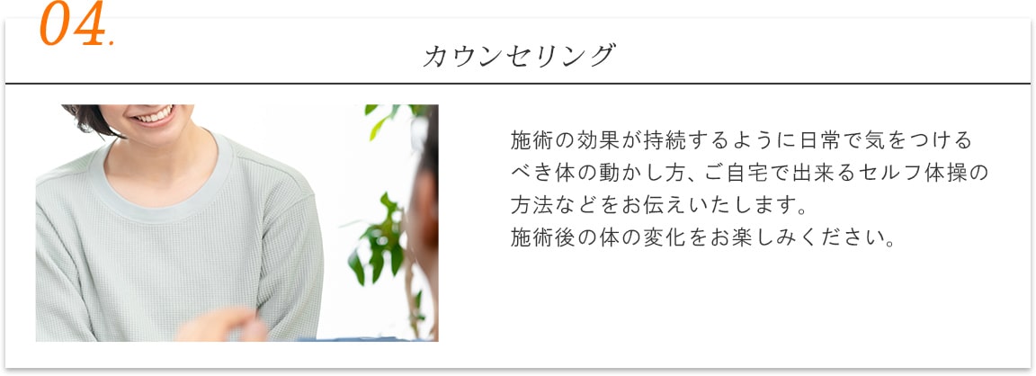 施術終了後にご自宅で出来るセルフ体操の方法をお伝えいたします。