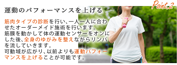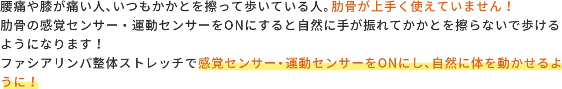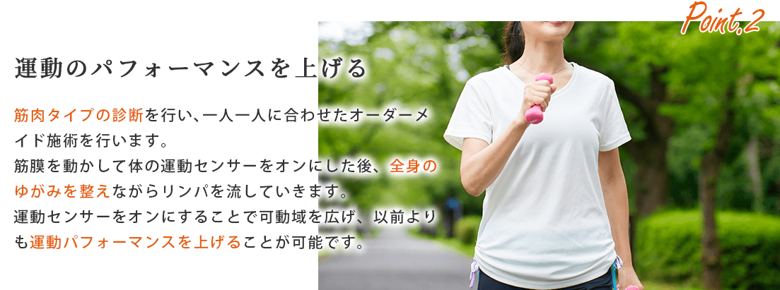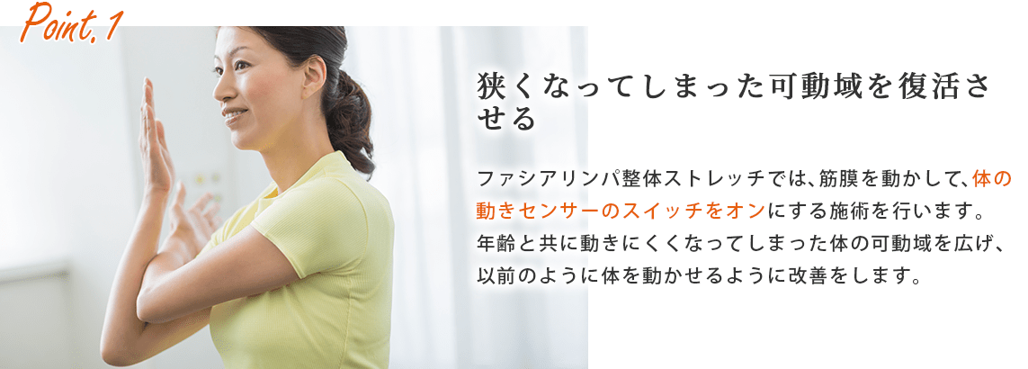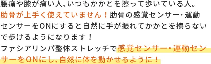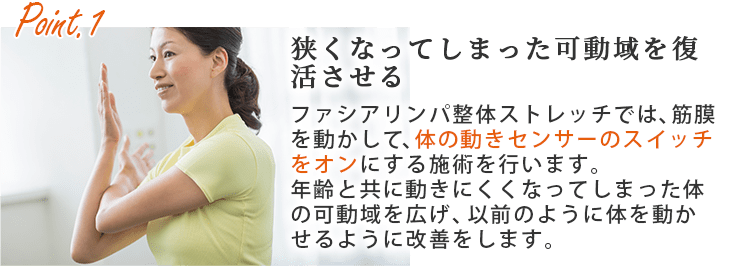 関節を動かした時に発生する痛みを解放すること。いわゆる動作時痛に対して身体のファシア(膜)に存在する固有センサーの働きを再起動することで関節本来の運動機能を引き出す徒手技術です。
